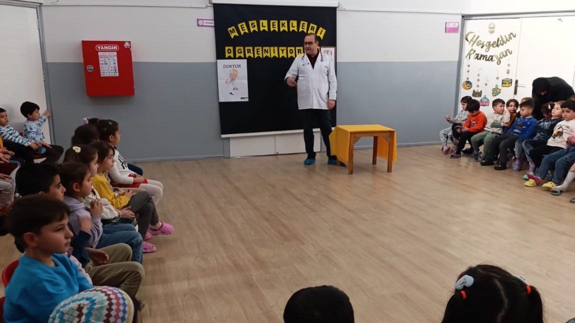Okulumuz öğretmenleri tarafından öğrencilerimize meslekleri tanıtma etinlikleri düzenlenmektedir.Bu kapsamda okulumuza Çocuk Hastalıkları Uzmanı Dr.Hüseyin Ertan GÜLER davet edilerek öğrencilerimize mesleği ile ilgili bilgilendirme yapmıştır.Katılım sağladığı için teşekkür ederiz.